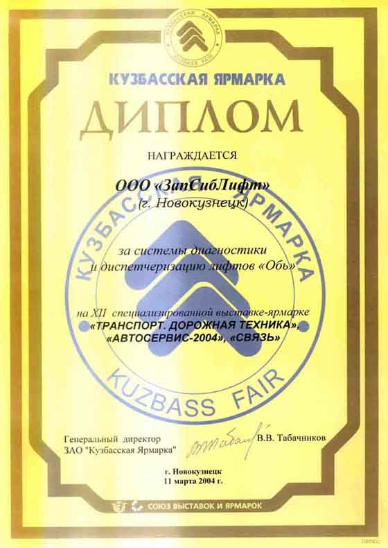 Награда за систему диагностики и диспетчеризации лифтов "Обь".